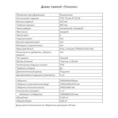Диван Пиксель (Аквилон) продается в интернет-магазине mebel-online-vladikavkaz.ru по цене 30 299 руб. Есть доставка по Владикавказу и Северной Осетии. Возможность подъема на этаж и сборки уточняйте у менеджера по телефону 8(800)505-27-11.